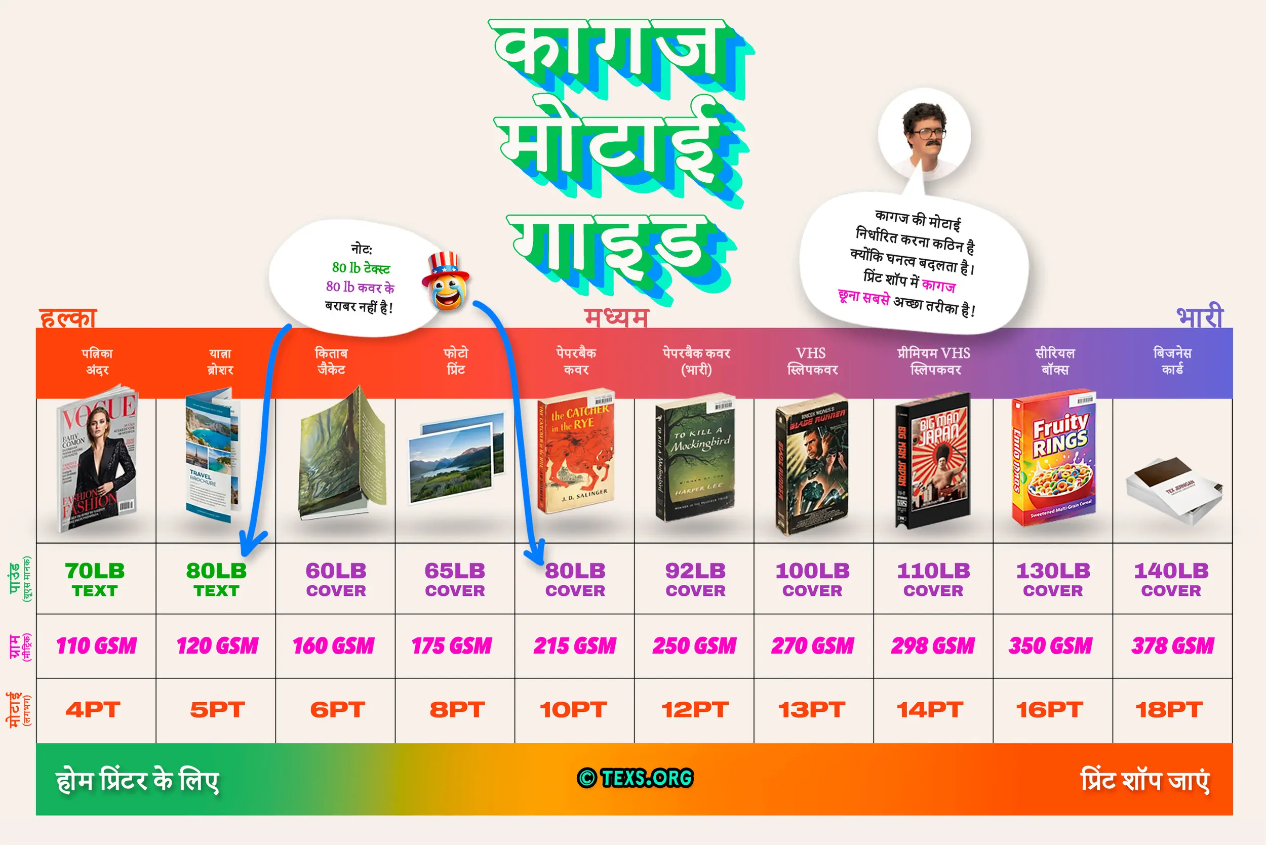 • भारी कागज मोड़ने में बेहतर टिकता है