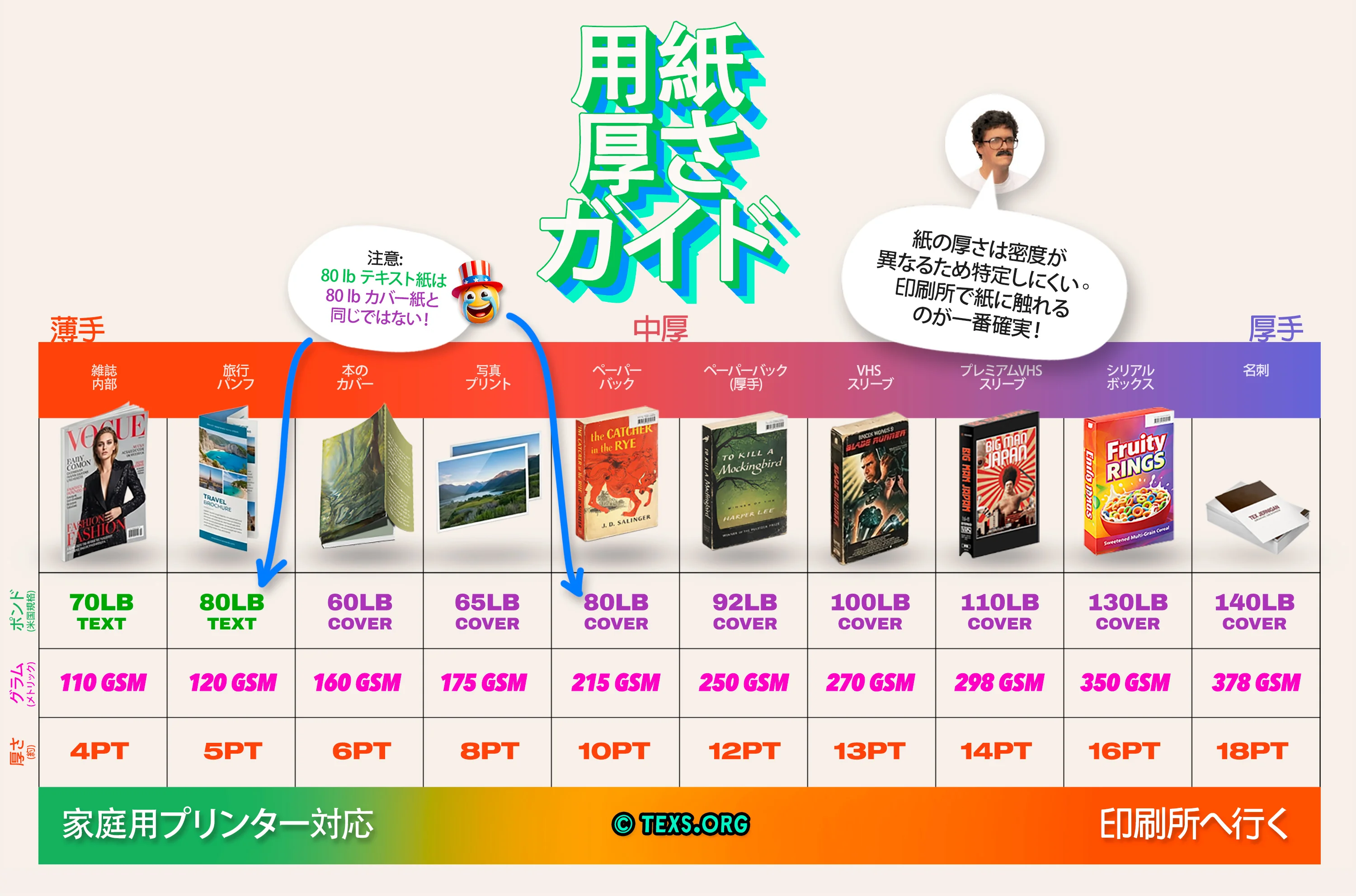 用紙の種類、厚さ、仕上げについてプロジェクト別に詳しく解説します。